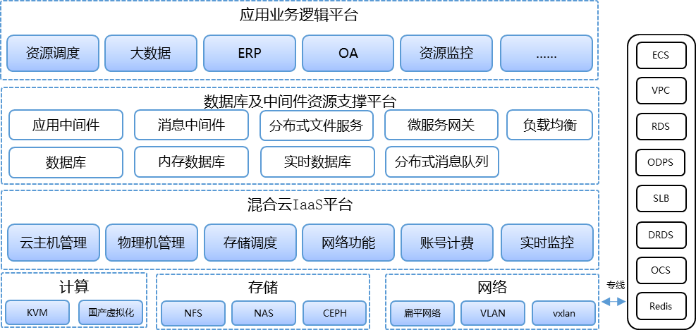 云平台统一规划、多次(按需)部署、降低规划难度、规避投资风险、灵活的扩减容机制和快速部署、可随时调整以匹配业务或IT的变化需求。
