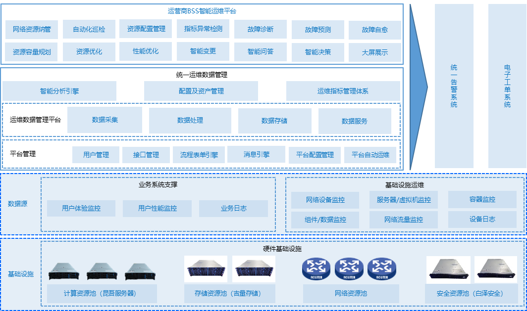 有效整合运营商业务、应用、组件、基础资源、网络等多方运维数据,打造运维数据服务化能力